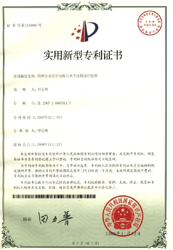 • 發明專利證書